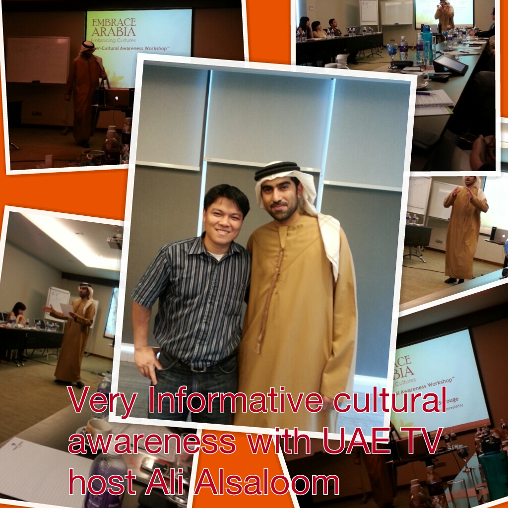 For the past two days, I had the privilege to attend a cultural awareness on Arab and UAE. The speaker, Ali delivered a well organized, lively and very interesting workshop that brings the participants closer of embracing Arab and UAE cultures. Ali was good in building rapport and taking the audience interest which was backed with several experiences working with people from different walks of life . His extensive travelling experiencing in several countries added values to his charismatic personality. Every minute of the discussion is full of surprises and information about Arab cultures. If you are looking for an oportunity to get to know more about working or leaving in UAE, Ali can definitely provide answer to your question. With his TV program, Ask Ali, he is in position to provide interesting facts about UAE.