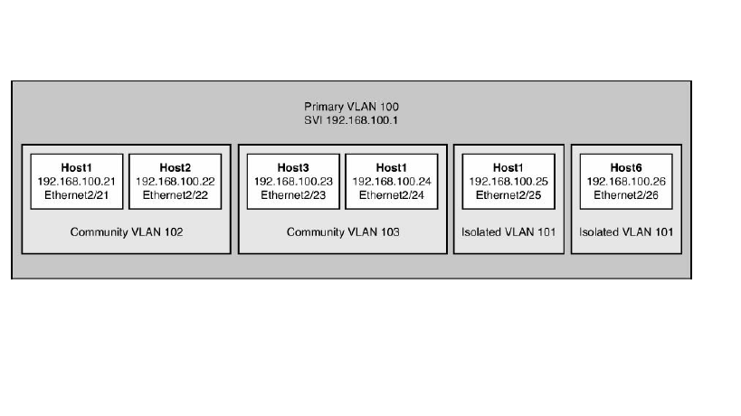 Host 4 (eth 2/24) – 192.168.100.24 – communicates only with Host 3 and its default gateway