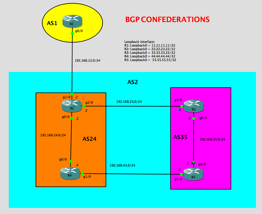 From the BGP routing Information base, new BGP attribute is introduced which is the Confed_AS_Set which prepend the Confederation Sub-AS. For the case of prefix 11.11.11.11/32 , it was advertised from R1 with AS 1 and it was learned by R2