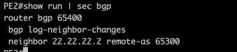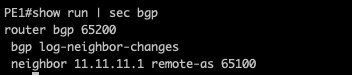 iBGP peering between CE1 <–> CE2 and eBGP peering between CE2 and PE2