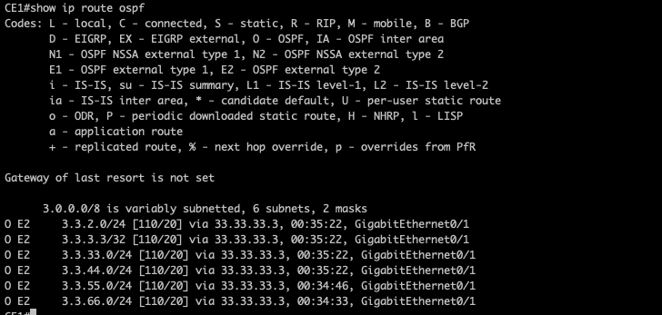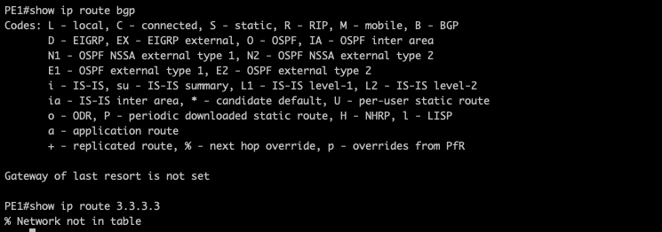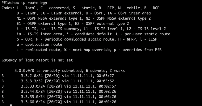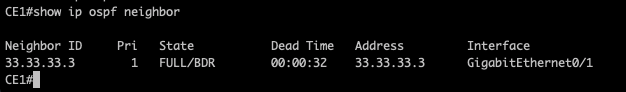 So from the output above, we can confirmed that both CE1 and CE2 are forming the eBGP towards the PE routers and iBGP for both CE’s.