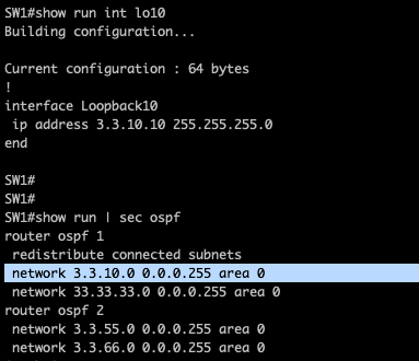 4. Redistributed the connected prefixes with loopbacks 1,2,3 and 4.