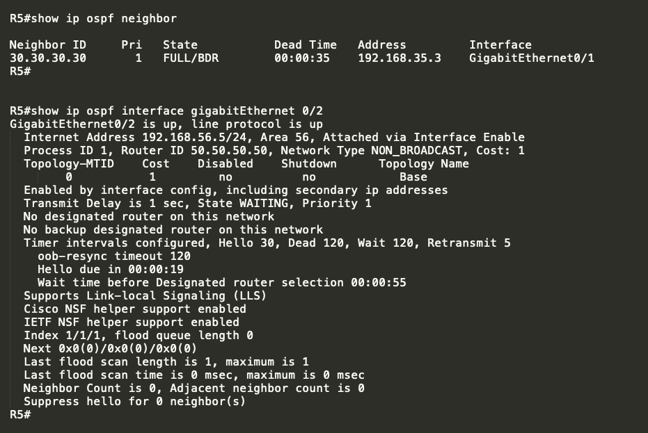 as observed, OSPF neighbors were formed and R5 is showinga s the DR or designated router..
